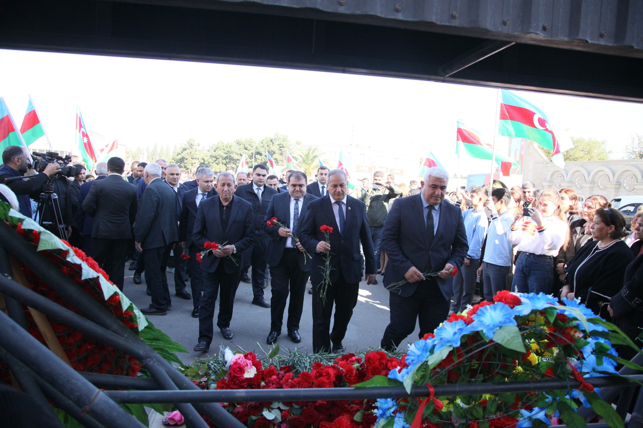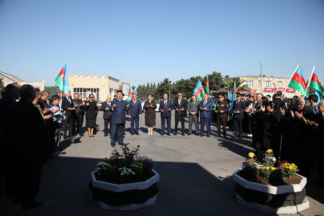 Vətən müharibəsi dövründə Ermənistan silahlı qüvvələri tərəfindən Bərdə rayonuna atılan raketlər nəticəsində həlak olmuş mülki şəhidlərin xatirə lövhəsinin önünə güllər düzülüb, xatirələri yad olunub.