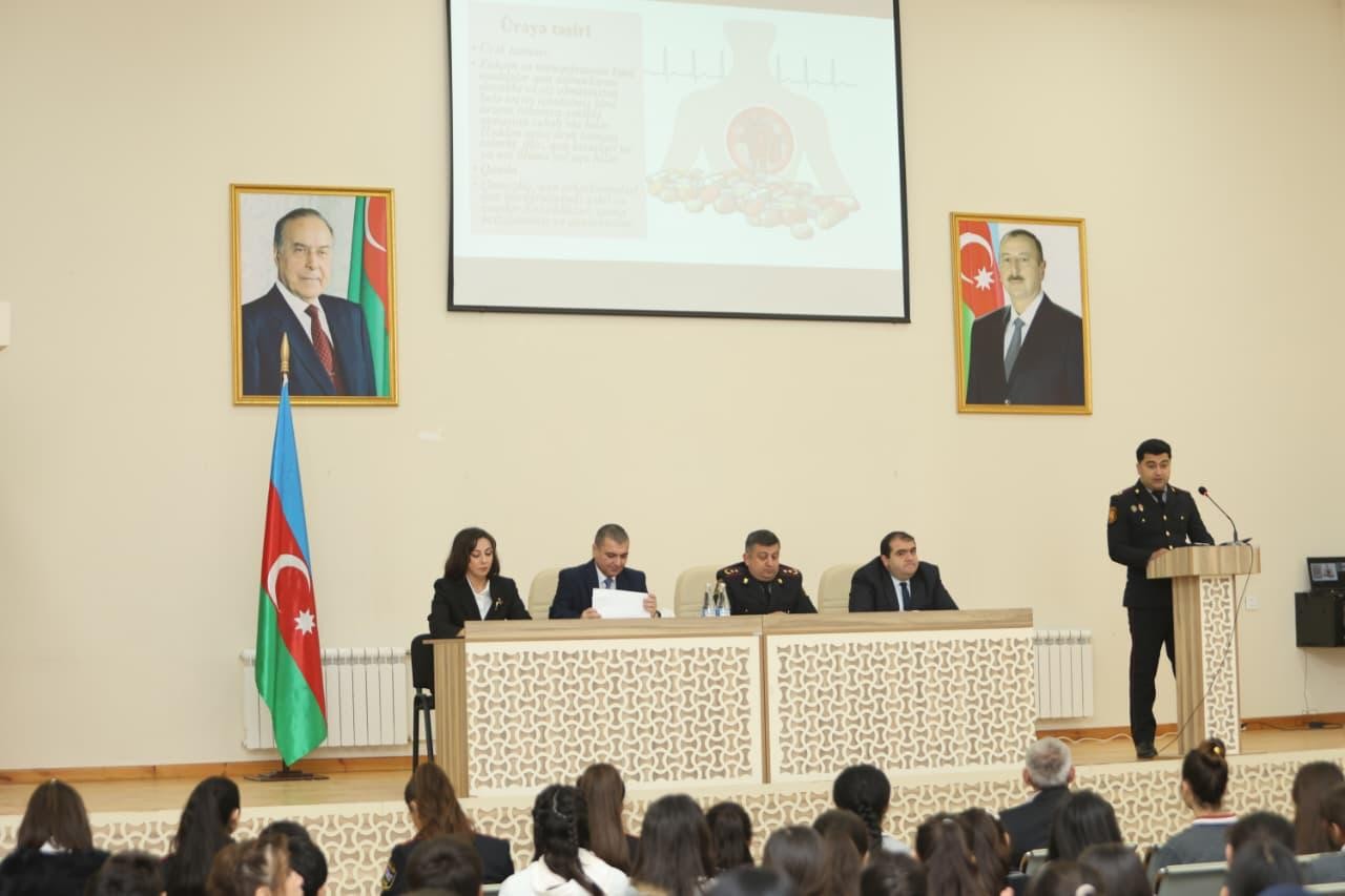 Tədbirdə Bərdə rayon Polis Şöbəsinin rəis müavini Nəbi Məmmədov, Bərdə rayon İcra Hakimiyyətinin Hüquq şöbəsinin müdiri Zaur Quliyev, Bərdə rayon Təhsil Sektorunun müdiri Nicat İsmayılov və polis şöbəsinin əməkdaşları çıxış edərək şagirdlərə narkomaniya və narkotik vasitələrin zərərləri, erkən nikahın yaratmış olduğu fəsadlar barədə geniş məlumat veriblər.